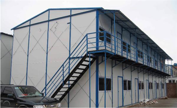雙層坡頂型彩鋼板活動(dòng)房是以C型鋼結(jié)構(gòu)為骨架,以彩鋼夾芯板為圍護(hù)材料,以標(biāo)準(zhǔn)模數(shù)系列進(jìn)行空間組合,構(gòu)件采用螺栓連接,是一種全新概念的環(huán)保經(jīng)濟(jì)型活動(dòng)房屋。它具有防風(fēng)抗震、隔熱保溫、安裝快捷、拆遷方便、能循環(huán)使用多次等優(yōu)點(diǎn),其平均使用成本大大低于其他材料搭建的同類房屋,因而廣受市場(chǎng)的歡迎和好評(píng)。